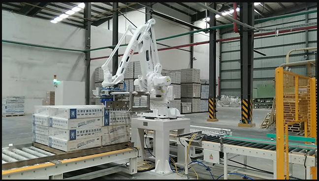 将产品通过进料输送带输送进料,机器人及夹具到产品上方,抓取产品后移动到栈板位,按事先输入的国产麻豆精品久久形式进行产品码放。