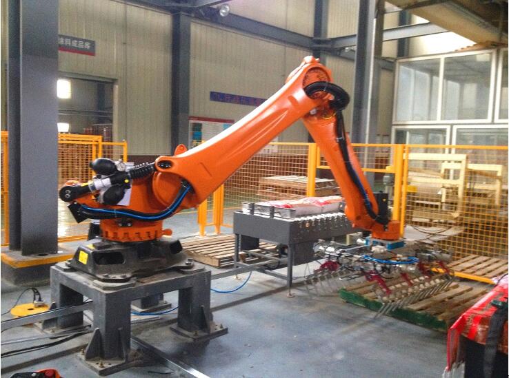 将产品通过进料输送带输送进料,机器人及夹具到产品上方,抓取产品后移动到栈板位,按事先输入的国产麻豆精品久久形式进行产品码放。