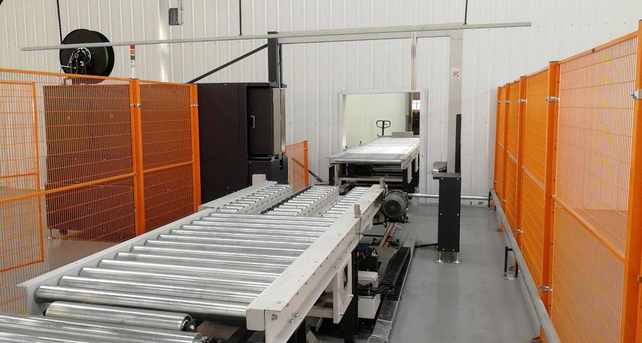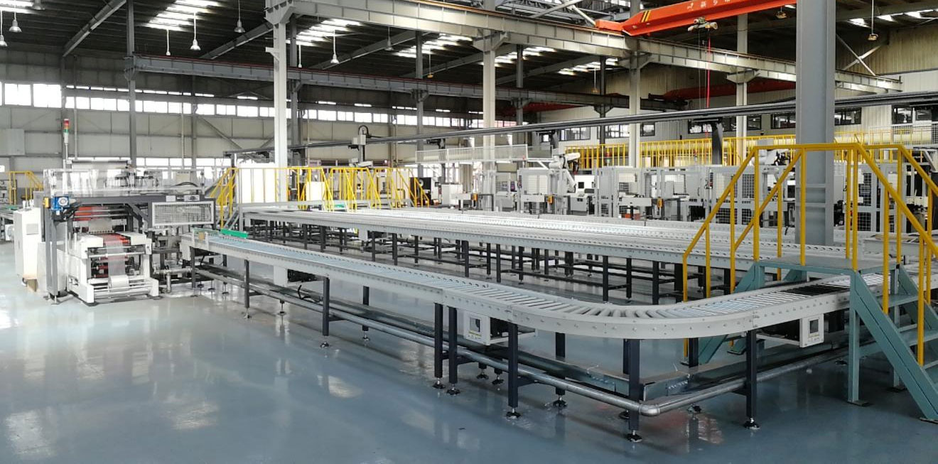工字轮作业卡信息RFID标签(或人工录入),由工字轮输出自动输入周转小车。焊丝盘由绕丝机出来经链接输送线进入上料输送带,自动进入防锈纸缠绕机,缠绕完焊丝盘经提升机经连廊输送线提升机降至久久精品国产亚洲AV无码麻豆车间,经过称重剔除机,重量合格进入自动分拣机,输送线送入由CCD引导自动检测标签是否清晰可识别,产品批号、规格、重量自动比对。产品信息内容一致合格,全封套膜收缩机,自动把收缩完成后的产品装进提前输送过来的片式纸板上面。放好后,设备自动把纸箱折叠成型,产品继续前进至下个工位并喷胶封住纸箱。纸箱从片式裹包机出来后,经过自动激光打码机依据视觉(批号、规格、重量信息自动调整喷印相应产品的批号和生产日期等。通过自动滚筒输送机输送到国产麻豆精品久久机前的自动国产麻豆精品久久机,按照编写好的程序要求自动整齐,由国产麻豆精品久久机并进行移栽国产麻豆精品久久,国产麻豆精品久久完成的成品托盘输送到在线缠绕机上,缠绕机按要求对托盘产品进行自动缠绕薄膜。(顶膜覆盖)缠绕薄膜完成后自动进入后段暂存输送机上,自动进入小车井型打包,打包完成进入暂存输送机检测到有垛体自动停止,AGV叉车叉走入库,同时AGV负责空盘运作及辅助包材运作。重复上述动作,进行对其它产品的久久精品国产亚洲AV无码麻豆。