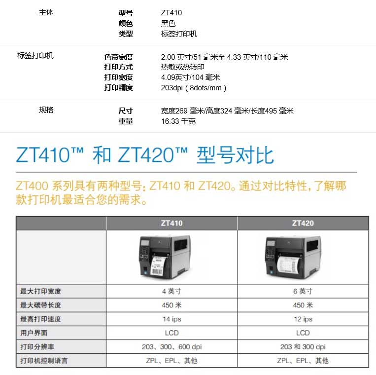 产品特征:斑马ZT410(203DPI)条码打印机;带网卡用途: